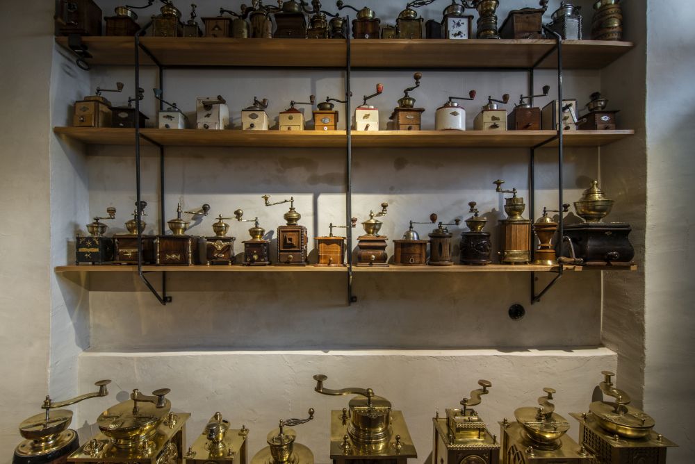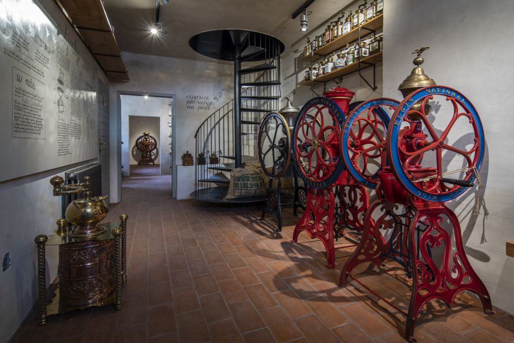 It is located in a house as old as the exhibited coffee makers. Fate of the machines harmonize with patina of the wall of this house in Kletnice. Reflects of the chrome stand out against the background of old coats of paint. The exhibits are regularly arranged so that their beauty and strength will impress on you. How many cups of coffee did each of them prepare? Who was pleasured with its delicious drink? Craftsmen with leather shoulder bags going to work in the morning, businessmen in suits and with ties relaxing after lunch, old ladies smiling over black and white photographs, writers having their notebooks always with them or young ladies with beautiful lips... Each of the coffee makers has its personality, and that is why they are exhibited separately, on individual bases. All of the machines are proud veterans having much in common with veteran automobiles. When walking among them, you will forget the present day, and through your imagination spiced with the Kletnice mood alchemists you will turn your steps in the 20th century. Enter the corridor, go through the grocer’s with various goods, up to the exhibition rooms. You may start your trip through beautifully smelling history of coffee…