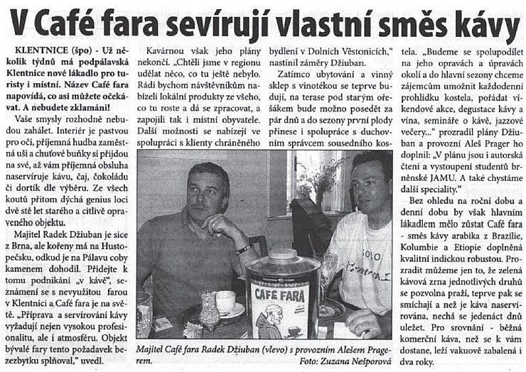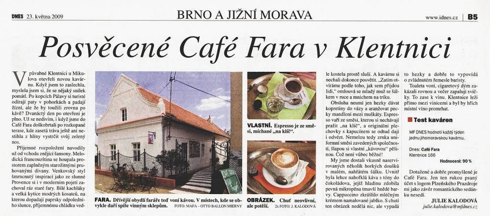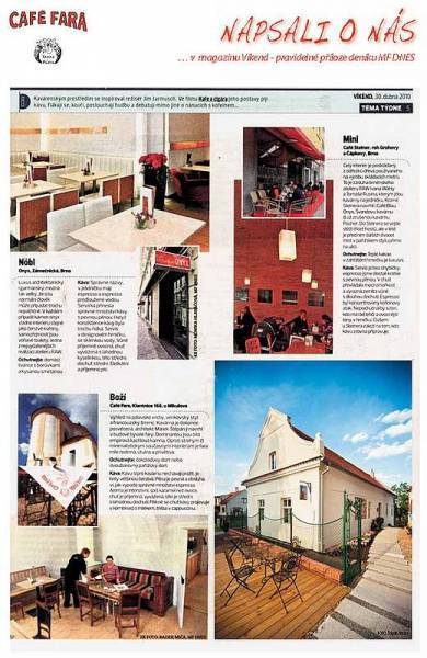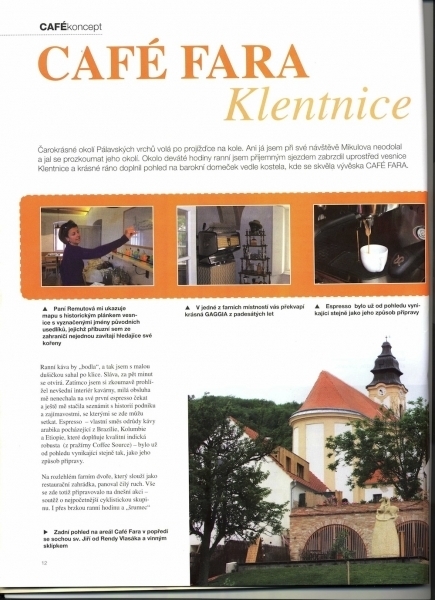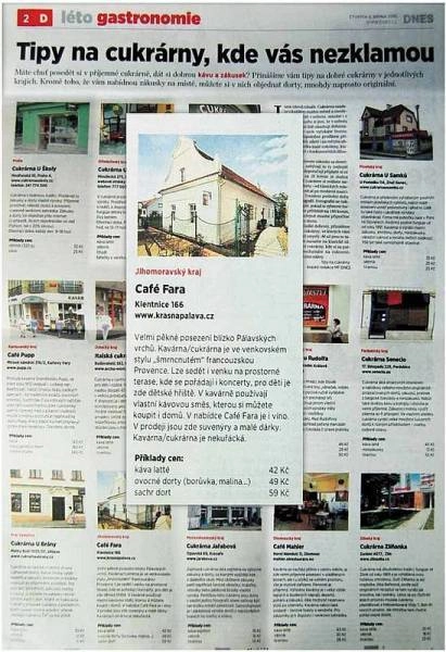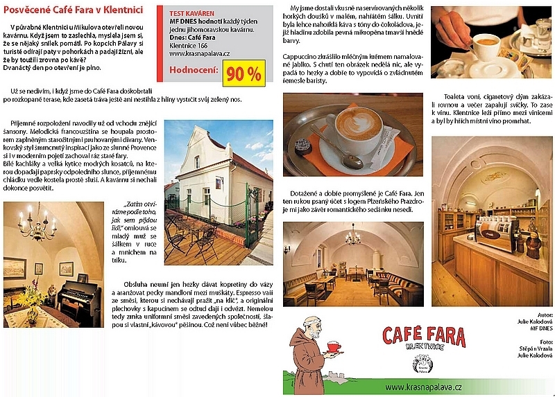 - Magazín Dolce Vita a zmínka o Café Fara ve velkém článku o Jižní Moravě "Země zaslíbená".