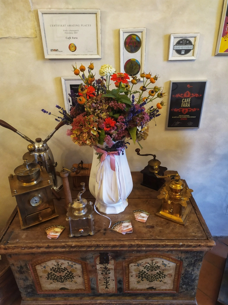 Dear customers, guests of our café. Welcome in the virtual shop where, as in the Fara shop, you may buy various souvenirs with motifs by Jiří Slíva, ORGANIC fruit and vegetable juices, gourmand specialities, delicacies made from apricots, T-shirts, magnets and many other popular goods. We wish you pleasant shopping and fun after you receive the parcel with the goods.
